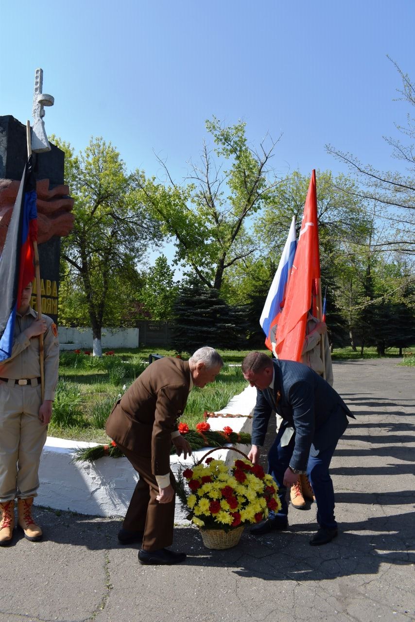 Собравшиеся склонили головы в минуту молчания перед светлой памятью всех, кто не вернулся с войны и возложили цветы.