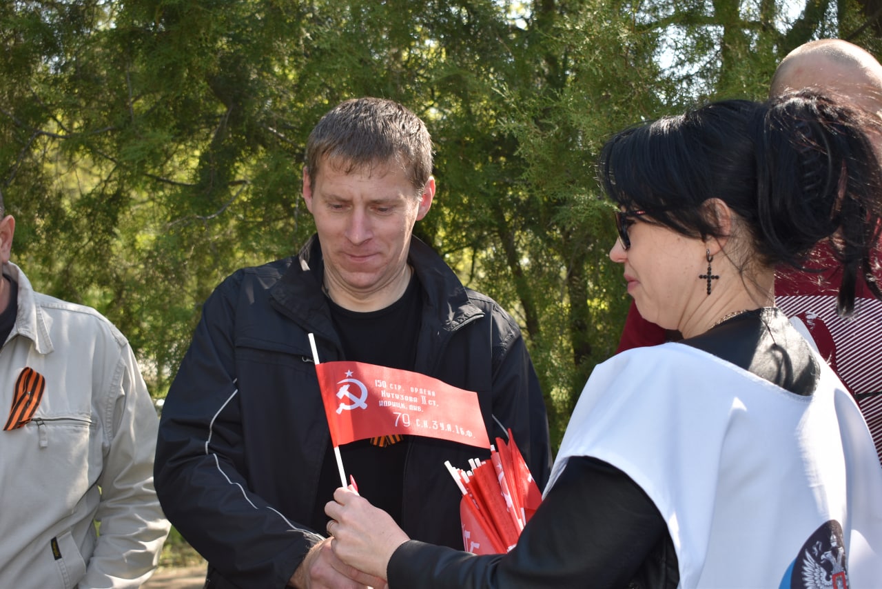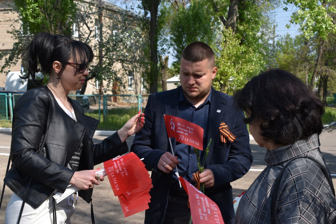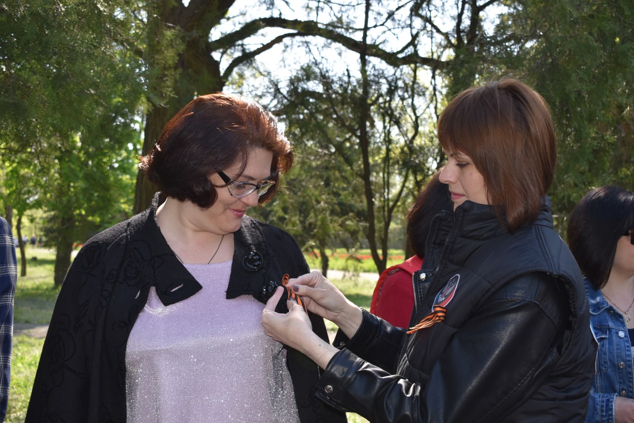 Сегодня, 9 мая, в День Великой Победы в городе Кировское раздача георгиевских лент прошла с 9:00 до 11:00 в Алее Славы.