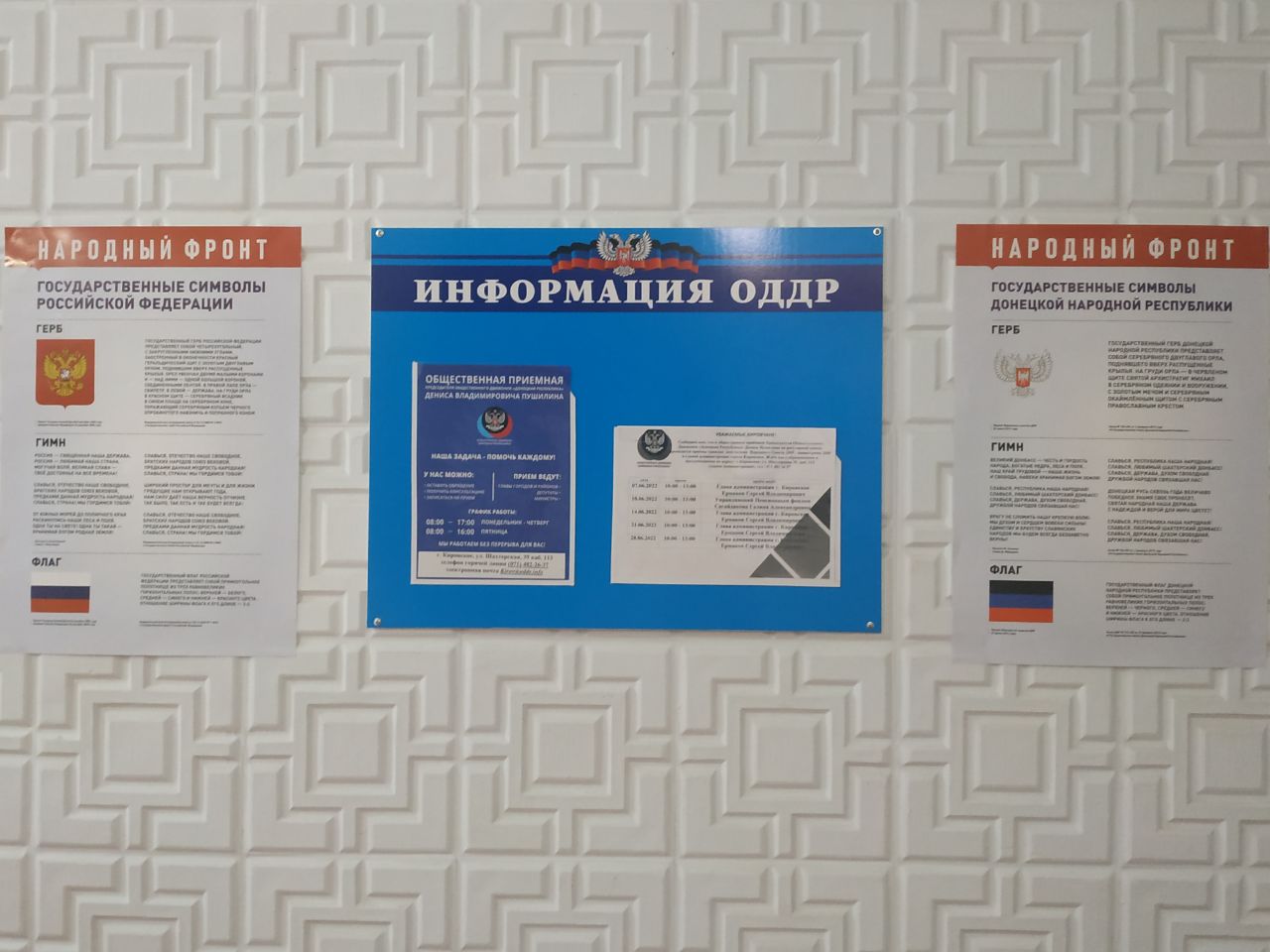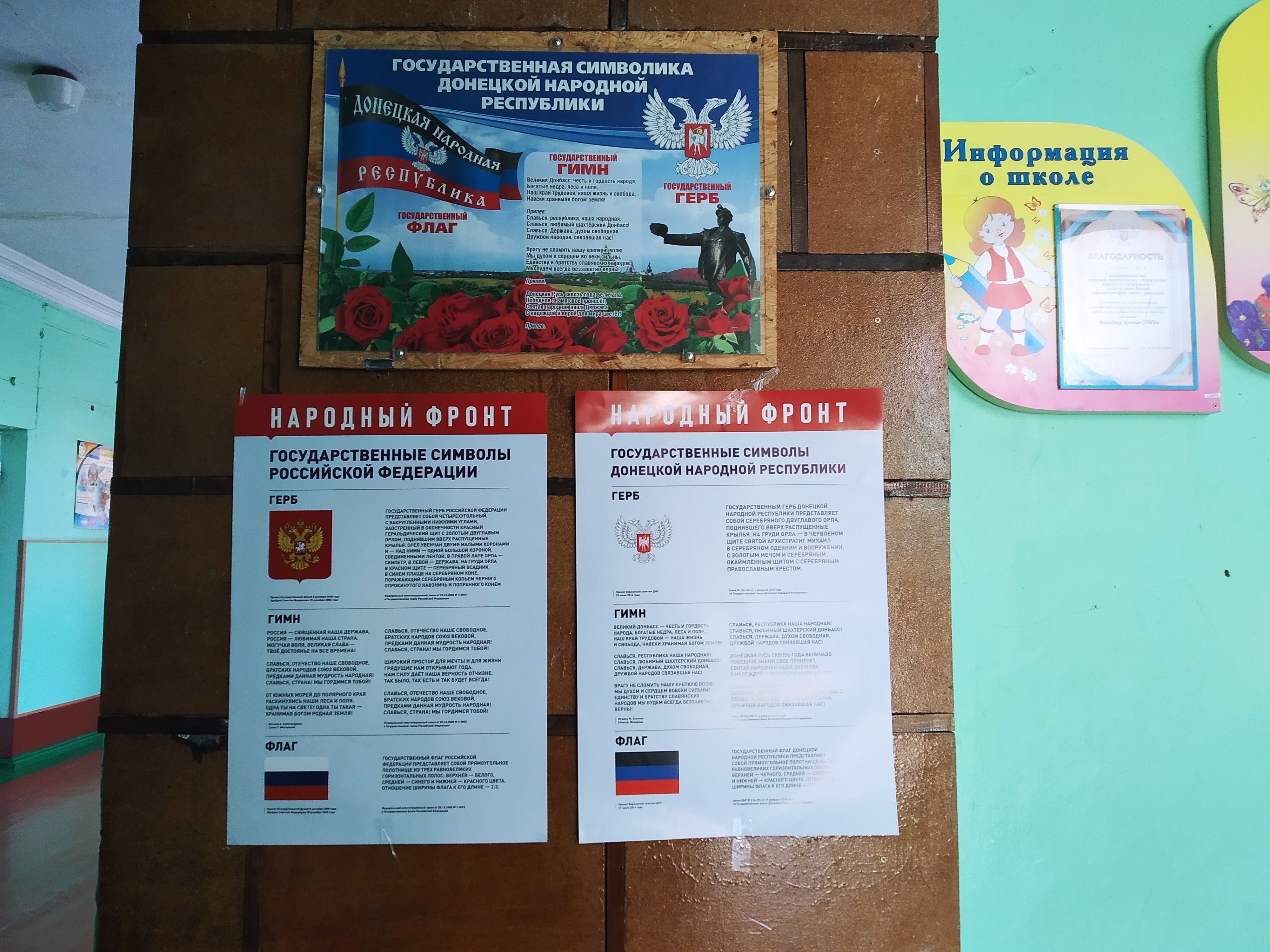 Государственные символы – это один из неотъемлемых атрибутов любого государства, олицетворяющих его идентичность и суверенитет. В учреждениях города Кировское размещена информация о государственных символах Российской Федерации и Донецкой Народной Республики