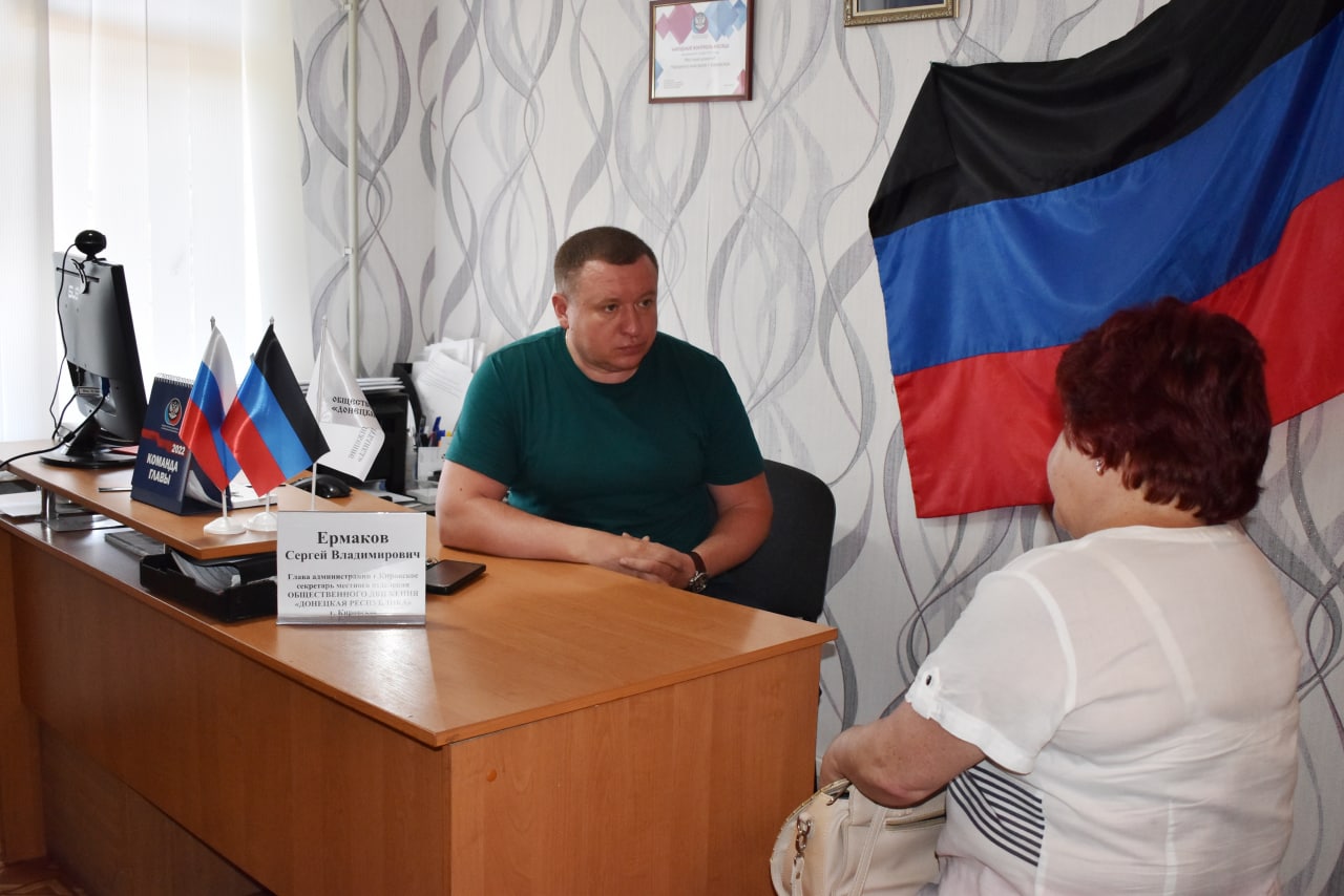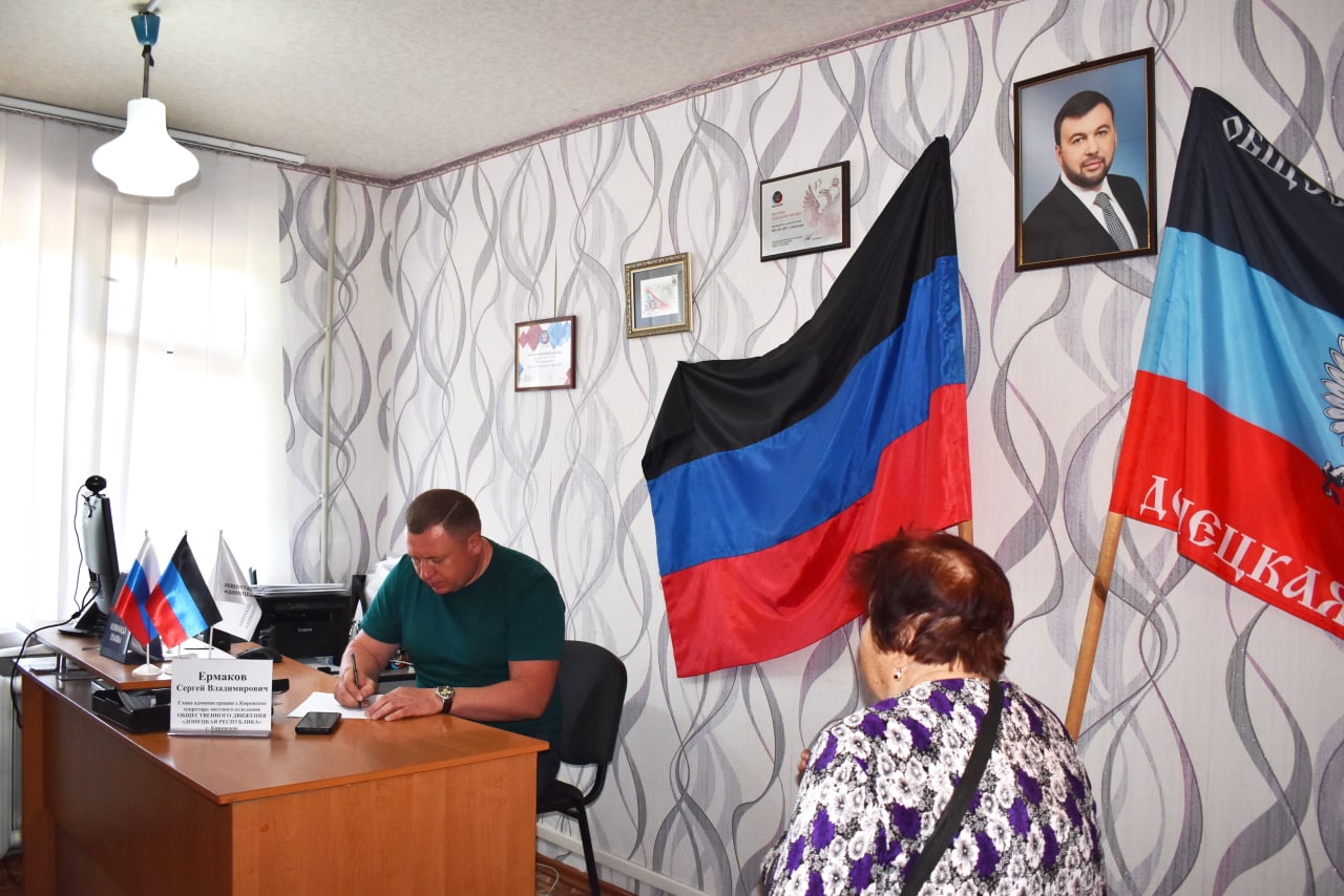 Во вторник, 14 июня, глава администрации города Кировское, секретарь местного отделения Общественного Движения «Донецкая Республика» Сергей Ермаков провёл приём граждан в общественной приёмной Председателя ОД «ДР» Дениса Пушилина в городе Кировское.