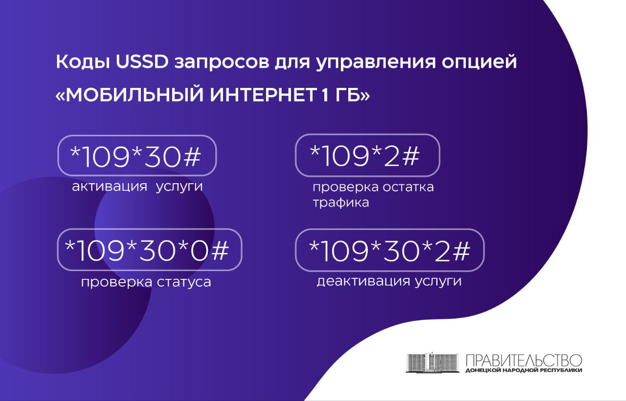 📌Коды USSD запросов для управления опцией «МОБИЛЬНЫЙ ИНТЕРНЕТ 1 ГБ»: