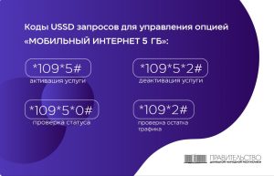📌Коды USSD запросов для управления опцией «МОБИЛЬНЫЙ ИНТЕРНЕТ 5 ГБ»: